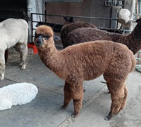 Es gibt zwei Rassen von Alpakas, das Huacaya und das Suri . Sie unterscheiden sich in der Struktur ihrer Wollfaser. Wir haben in der Oberen Mühle Huacaya - Alpakas. Diese haben eine feine, gleichmäßig gekräuselte Faser und einige Deckhaare (auch Grannenhaare genannt).