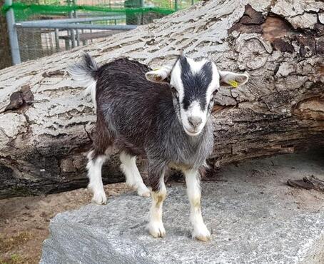 Zwergziegen sind Herdentiere, die nicht gerne alleine sind. Die kleinen Feinschmecker essen Heu und Gras. Daraus suchen sie immer zuerst das Beste (Blüten, Knospen, etc) heraus und lassen den Rest gerne liegen. Mit ihren kurzen Beinen und eher dicken Bäuchen würde man nicht vermuten, dass die Tiere sehr geschickte Kletterer sind und auch auf Bäume kommen.