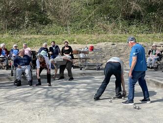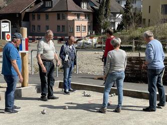 Die schöne Spielfläche von 12.5m x 6m bietet genügend Platz für zwei Partien, welche parallel stattfinden können. Die Anlage liegt mitten im Sinnespark, gleich neben dem Stall und den Gehegen der Zwergziegen, Kaninchen und Hühner. Sie ist umgeben von vielen Sitzbänken und Tischen, welche zum Zuschauen, Ausruhen und Verpflegen ideal geeignet sind. Alle sind herzlich eingeladen, das spannende Geschicklichkeits- und Präzisionsspiel selber mal auszuprobieren.